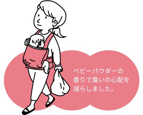 • 02 ベビーパウダーの香りで臭いの心配を減らしました。